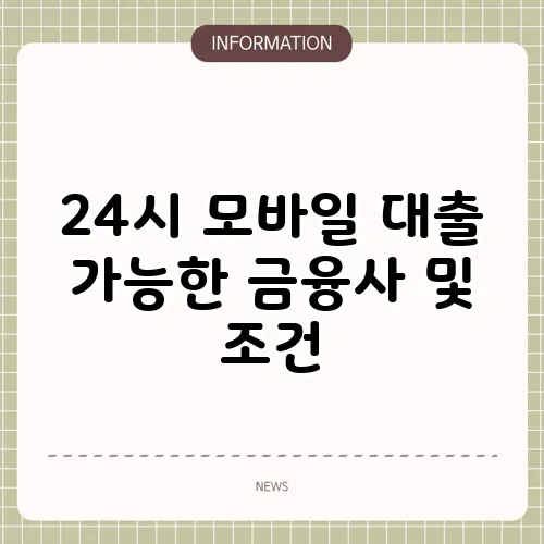 24시 모바일 대출을 제공하는 금융사와 그 특징