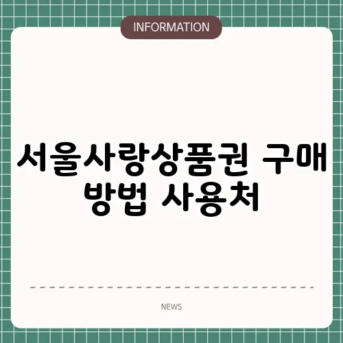 서울사랑상품권 사용처와 가맹점